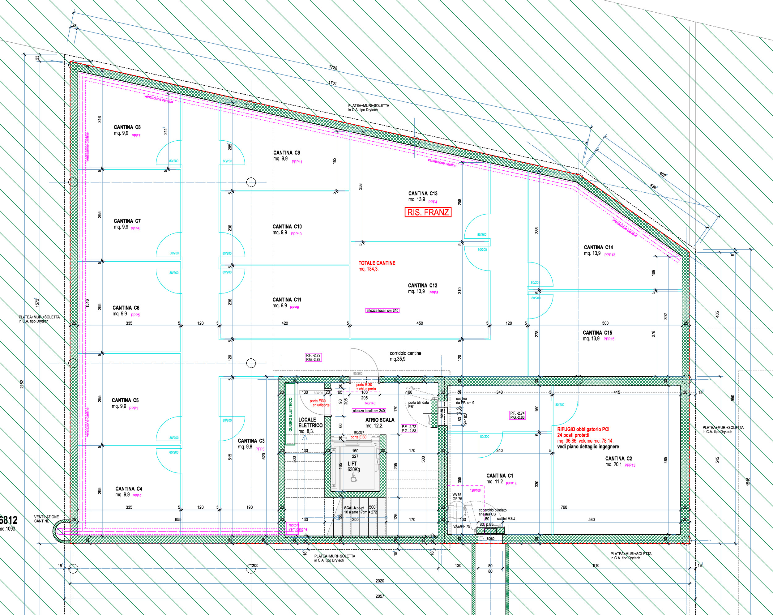 Ogni appartamento dispone di uno o due posteggi al piano entrata, a seconda della dimensione e posizione dell’appartamento.