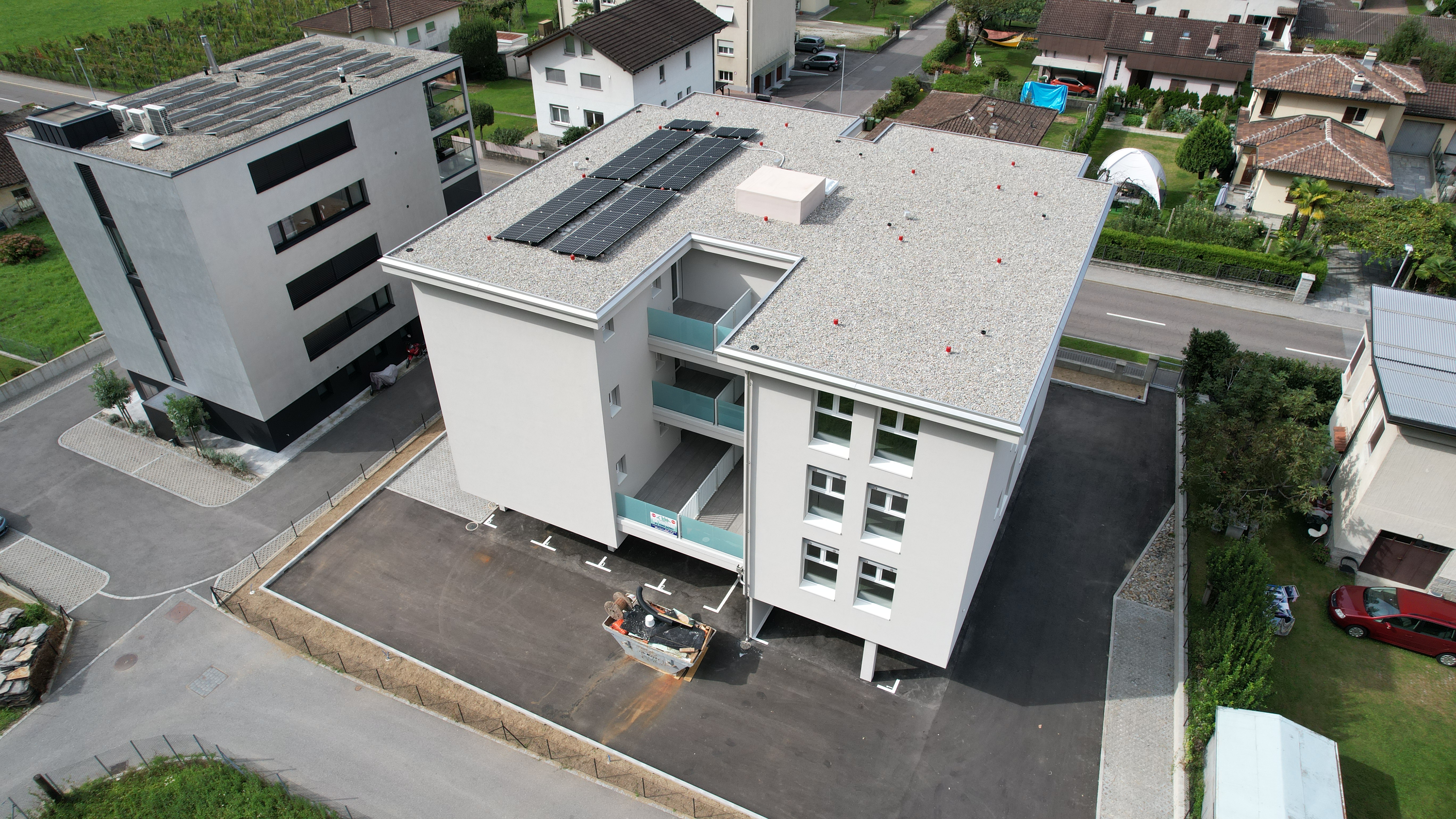 Nuova e moderna costruzione in fase di ultimazione composta da 10 appartamenti di 2,5 locali ed 1 appartamento di 4,5 locali ripartiti tra il 1° piano ed il 3° piano. Depositi-cantine e posti auto al piano terreno.