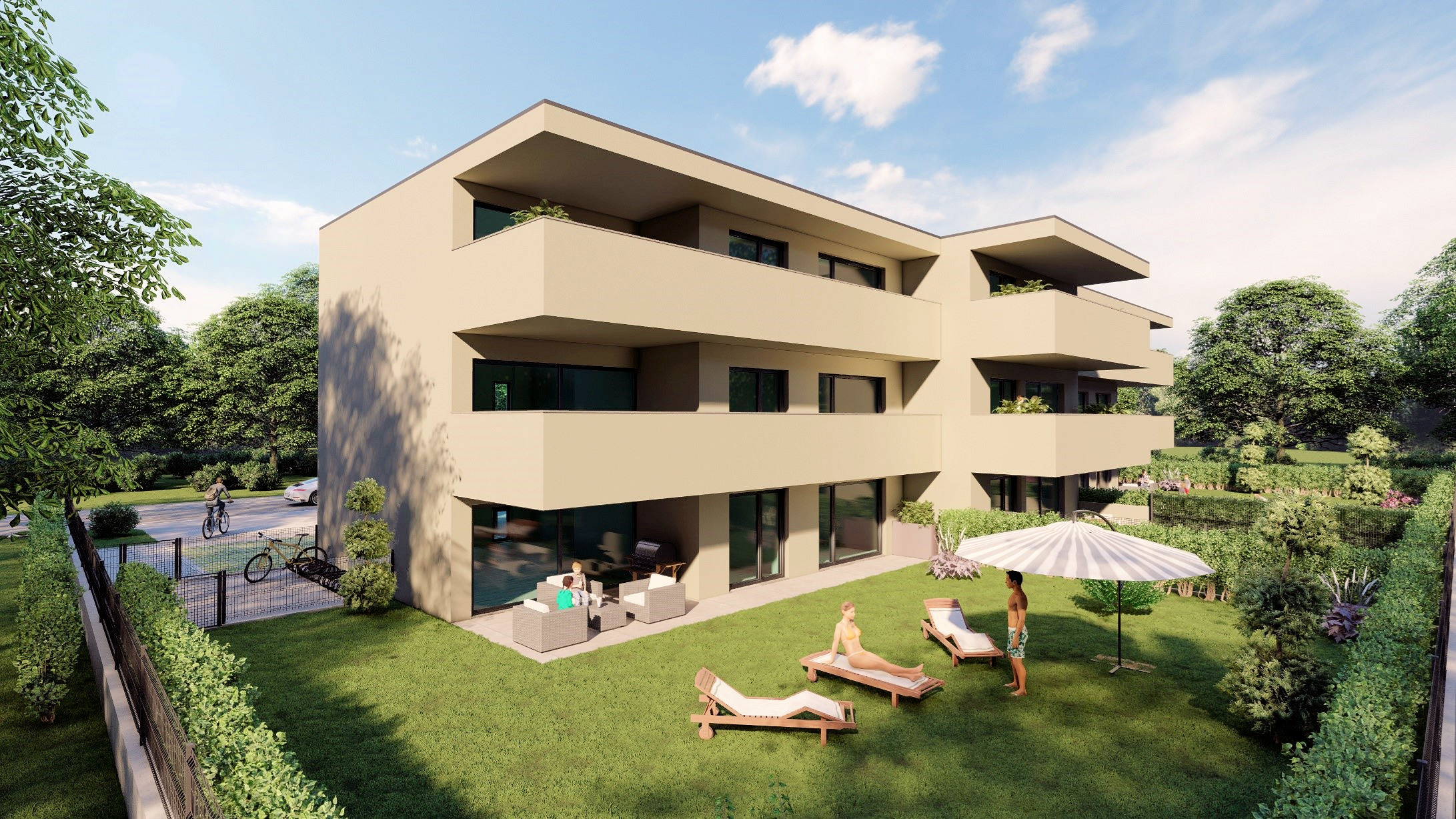 Appartamento con bel giardino in piccola ed elegante costruzione