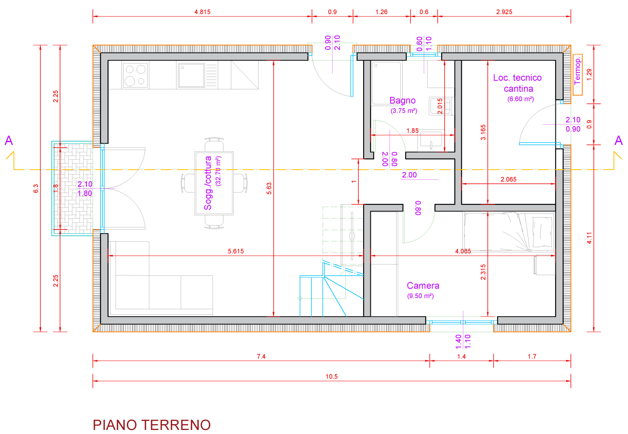 Il piano terreno si presenta come Open Space, con moderna cucina ben arredata, soggiorno con accesso alla terrazza ed al giardino, servizio doccia finestrato e comoda camera da letto allo stesso piano.
