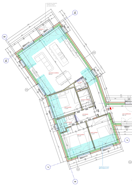Particolare attenzione è stata data agli aspetti energetici: Impianto a regolazione individuale per ogni locale, termopompa aria/acqua e distribuzione calore con serpentine a bassa temperatura posate a pavimento.