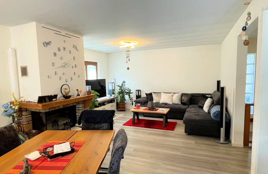 L’abitazione al piano inferiore di 3 ½ locali è stata completamente rinnovata ed anch’essa usufruisce di giardino pianeggiante indipendente.