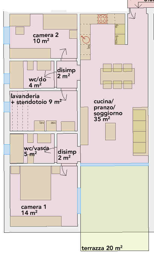 Particolarità molto apprezzate sono i doppi servizi e la lavanderia privata inserita all'interno dell'abitazione che conferiscono un'ottima comodità d'utilizzo.