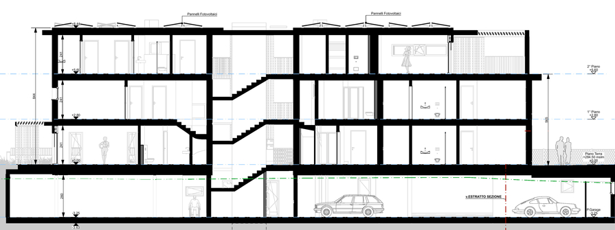Al piano interrato della residenza si trovano i locali tecnici, l’autorimessa e le cantine, adiacente ai posti auto viene proposto un ulteriore locale annesso da adibire a deposito.