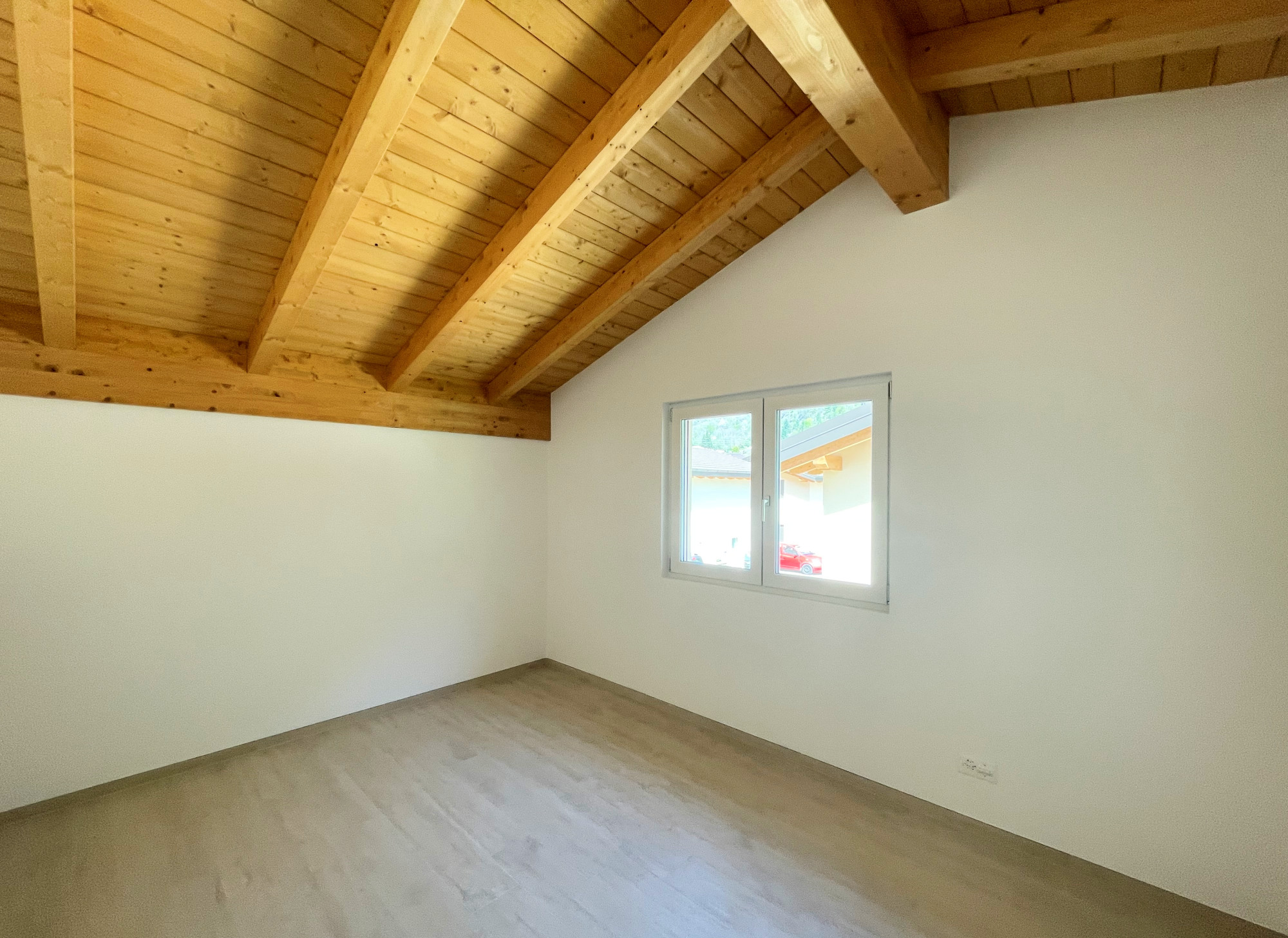 Lo spazio abitabile si presenta molto accattivante, viene valorizzato sia dall’altezza dei soffitti che dalla tipologia del tetto eseguito in legno a vista.