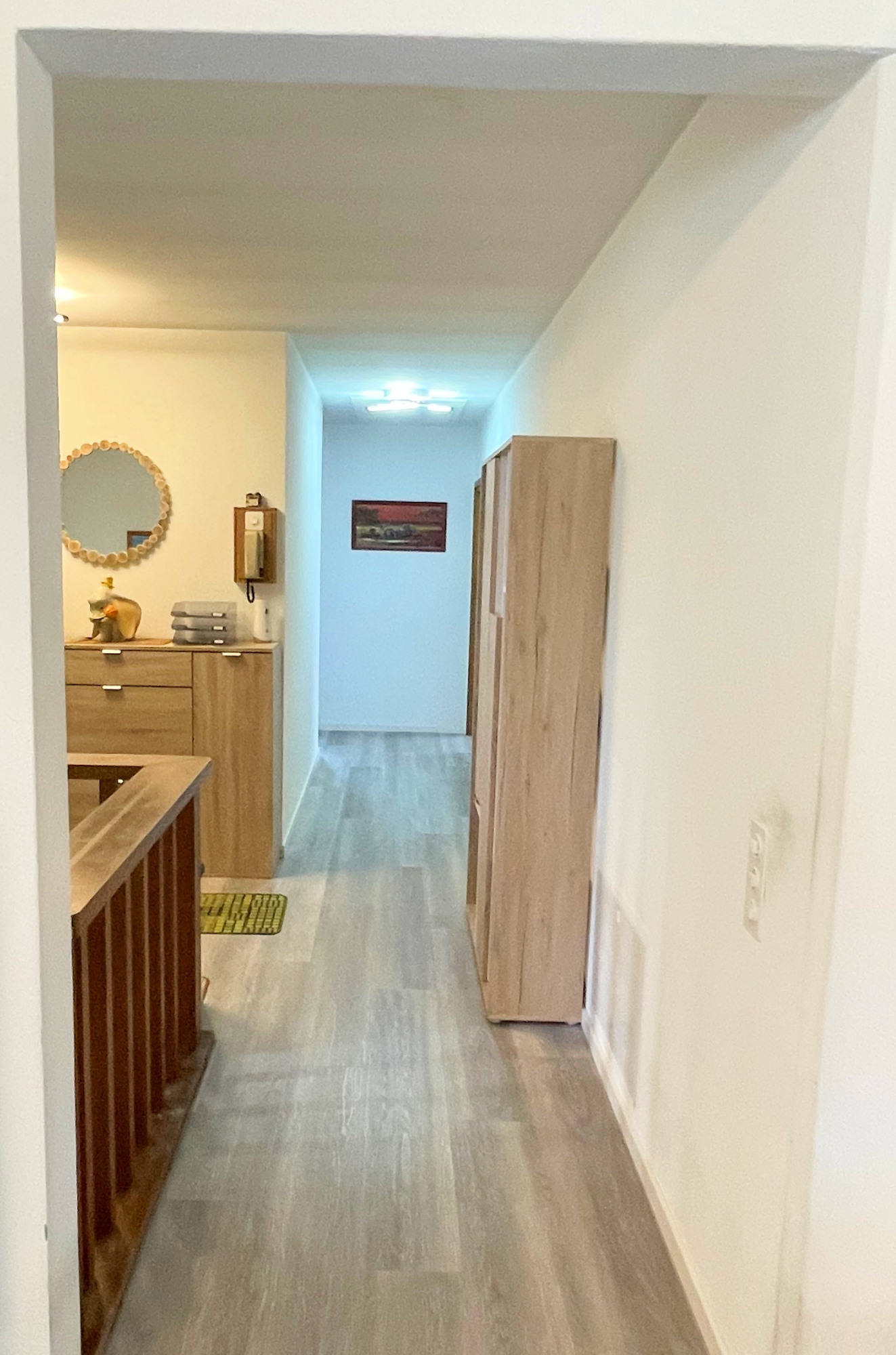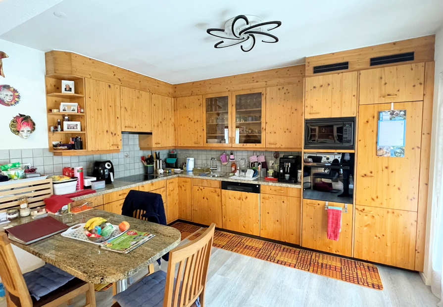 L’abitazione al piano inferiore di 3 ½ locali è stata completamente rinnovata ed anch’essa usufruisce di giardino pianeggiante indipendente.