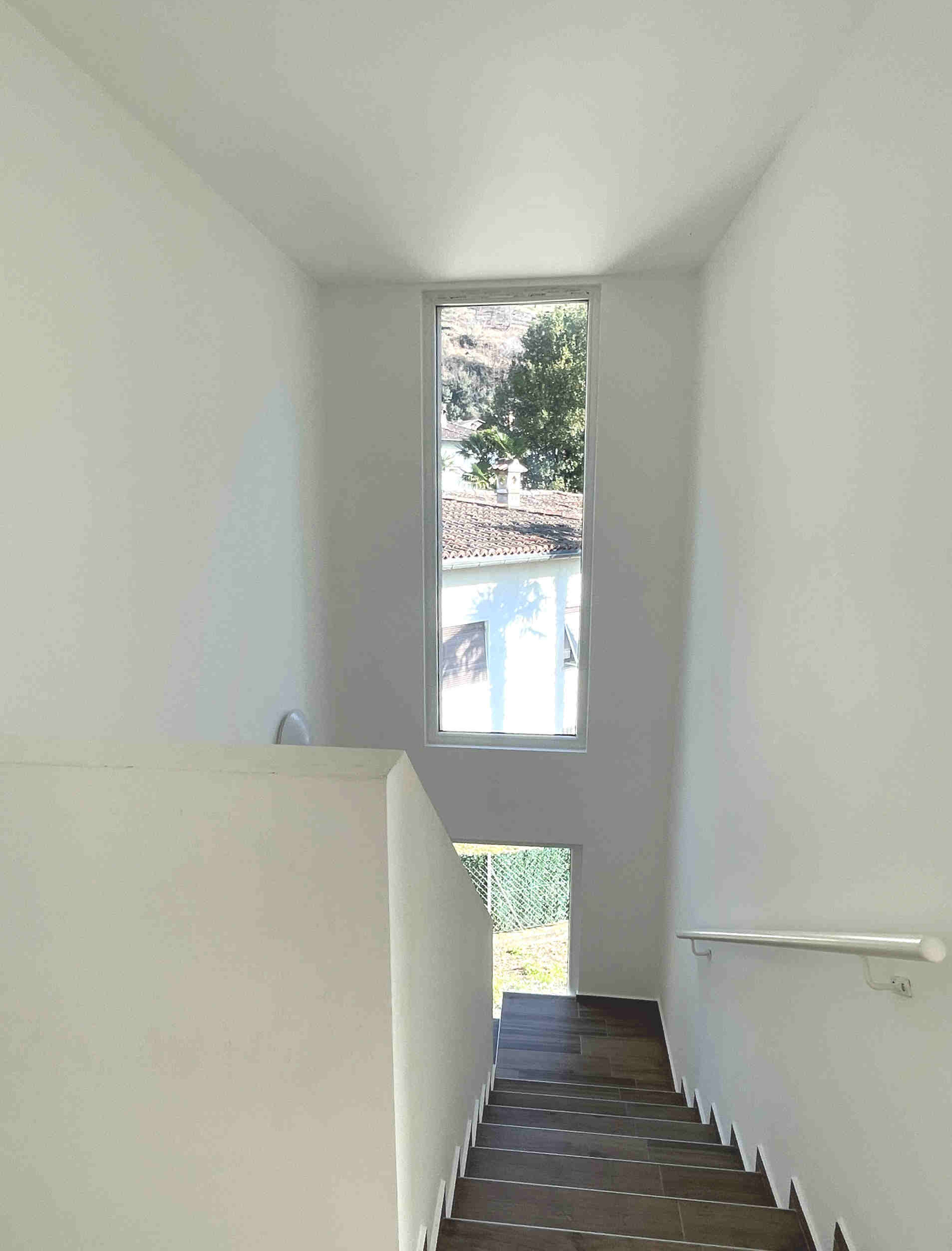 La costruzione si sviluppa su due piani fuori terra e uno interrato ed è caratterizzata da ampie vetrate che illuminano tutti gli ambienti interni di luce naturale garantendo un’elevata qualità abitativa.