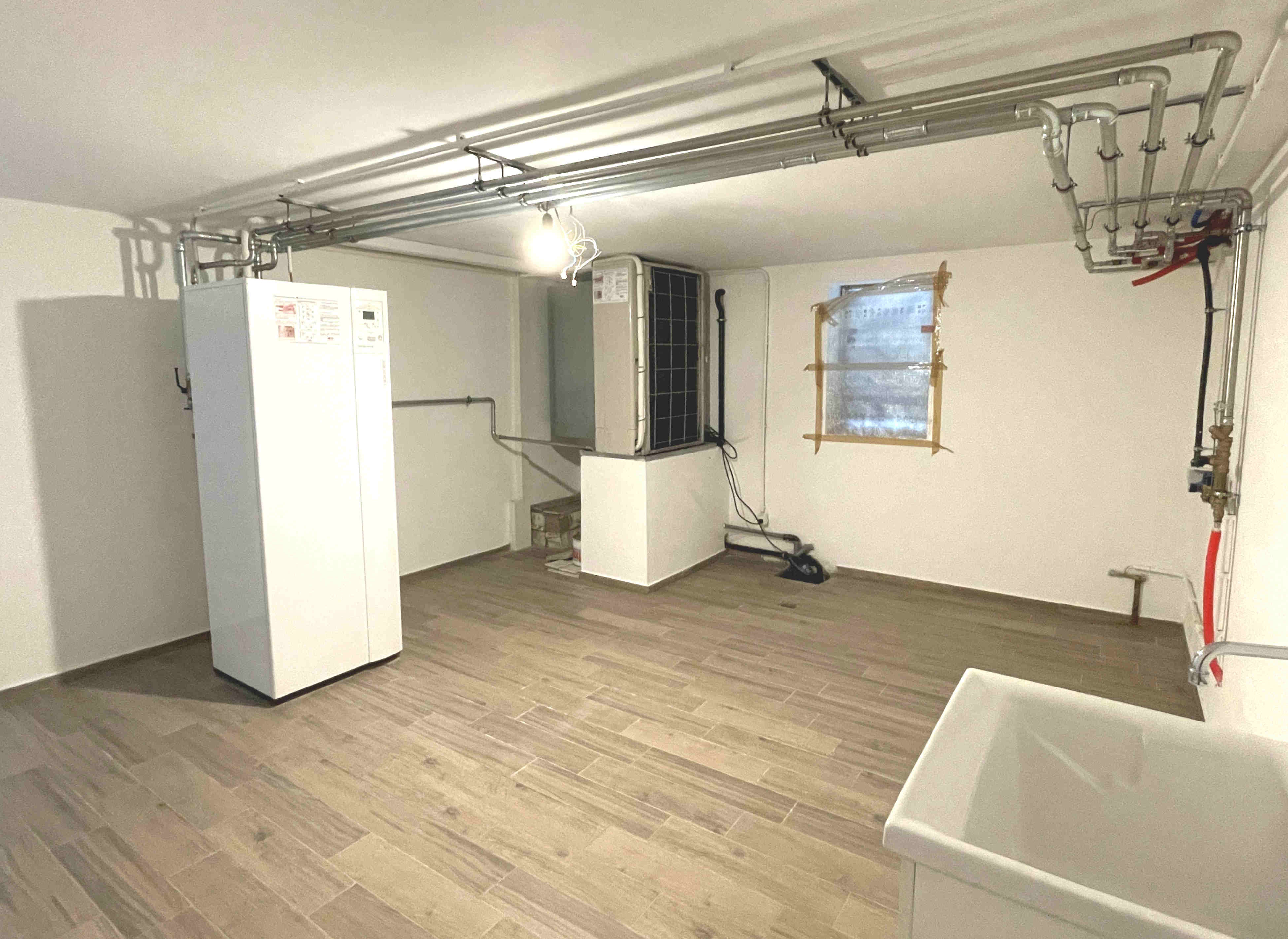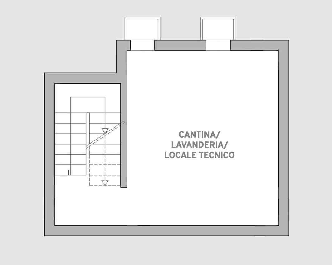 Al piano interrato trova posto un ampio locale adibito a cantina, lavanderia e locale tecnico con termopompa. All’esterno si trovano due posti auto di cui uno coperto.
