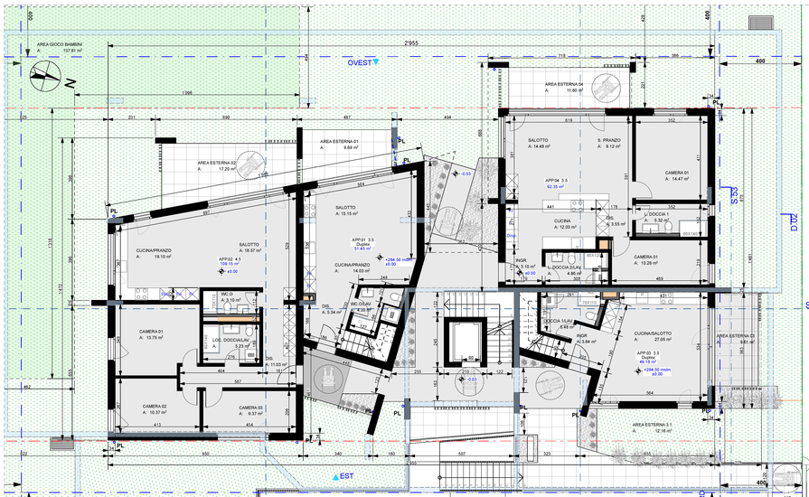Gli spazi esterni sono garantiti dai grandi giardini e dalle ampie terrazze.